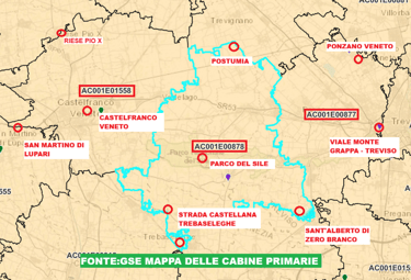 Nella mappa sono indicate la cabine di alta tensione su cui opera CER MarcaVIva